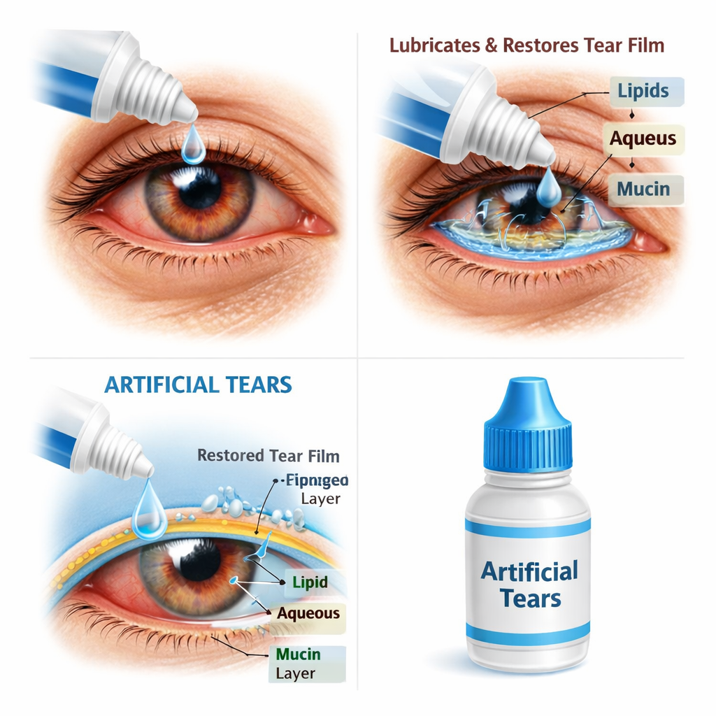 Eye drops for dryness help lubricate the eyes and restore moisture to the tear film, providing fast relief from irritation and burning. They improve tear stability, which supports clearer and more consistent vision throughout the day. Regular use can reduce inflammation and protect the surface of the eye from environmental stressors like wind and screen time. Over time, eye drops help maintain overall eye comfort and support long-term eye health.